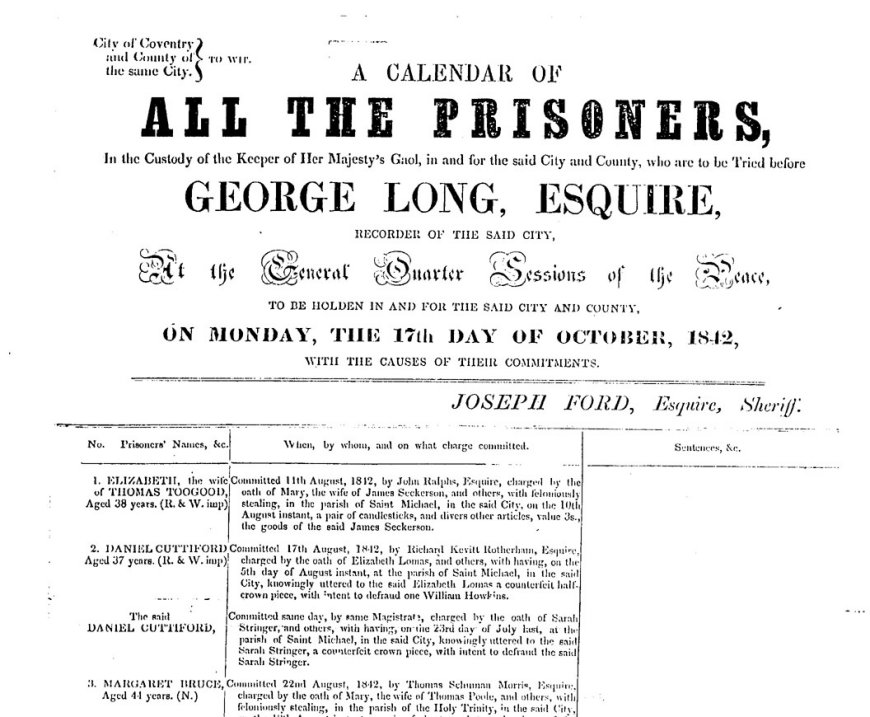 Extract from Calendar of Coventry Quarter Sessions 17 October 1842
